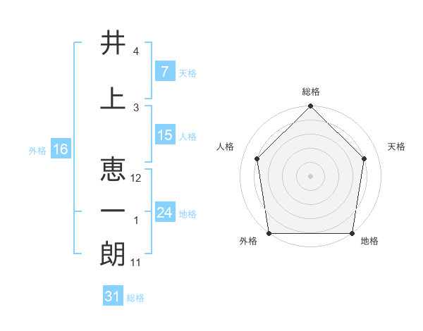 井上 恵一朗さんの総格は31画の5点!
