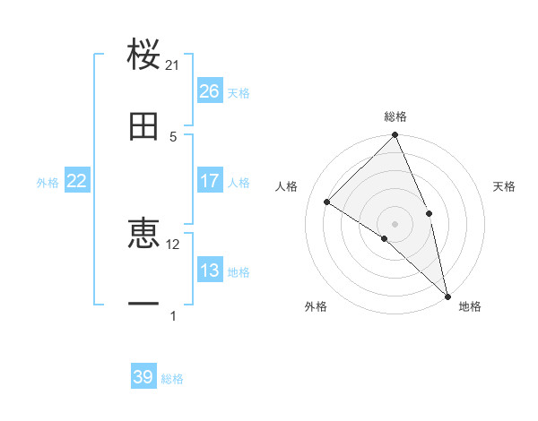 桜田 恵一さんを姓名の画数から五運を鑑定