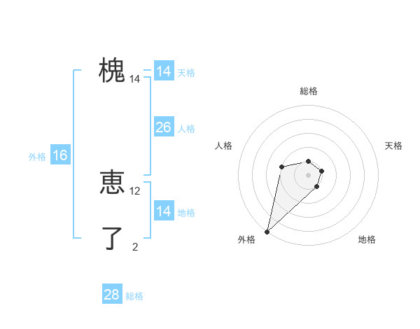 槐 恵了さんの天格は14画の1点!