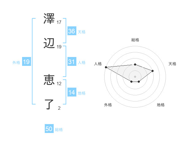澤辺 恵了さんの総格は50画の2点!