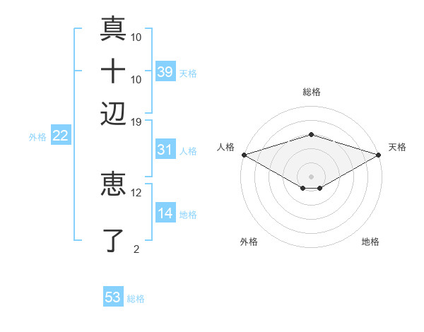 真十辺 恵了さんの総格は53画の3点!