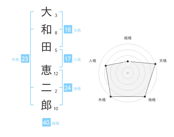 大和田 恵二郎さんを姓名の画数から五運を鑑定