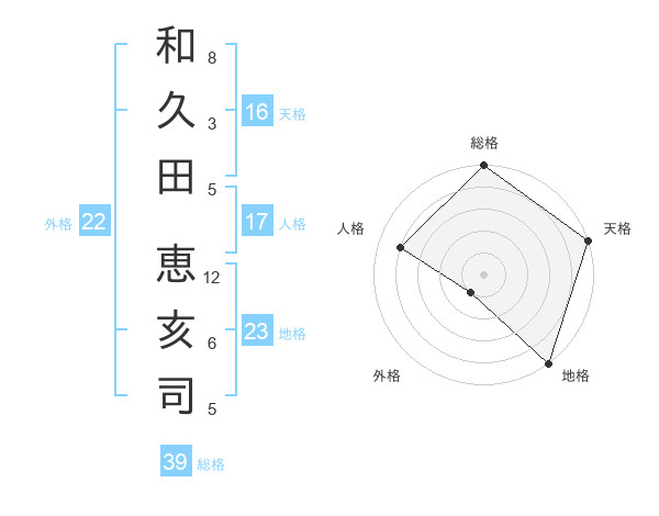 和久田 恵亥司さんの外格は22画の1点!