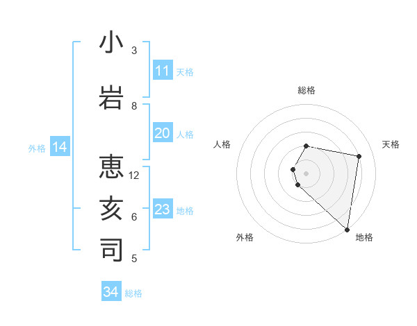 小岩 恵亥司さんの総格は34画の2点!
