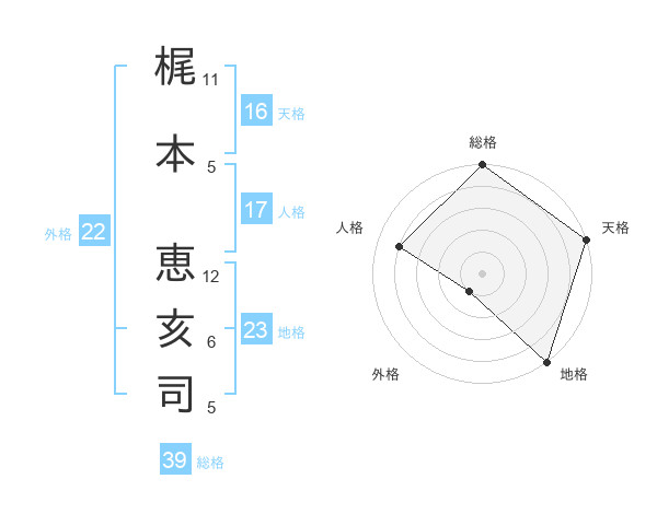 梶本 恵亥司さんの天格は16画の5点!