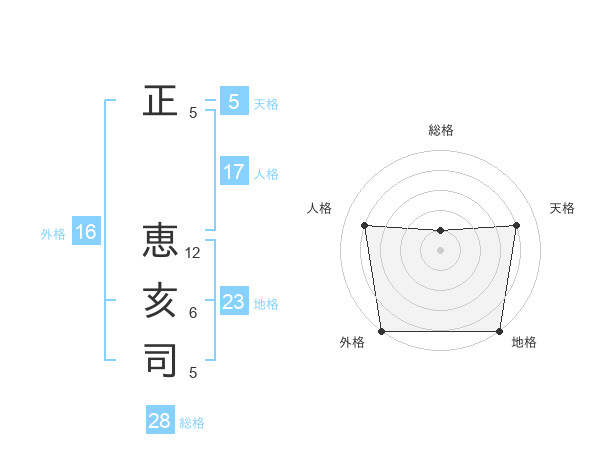 正 恵亥司さんを姓名の画数から五運を鑑定