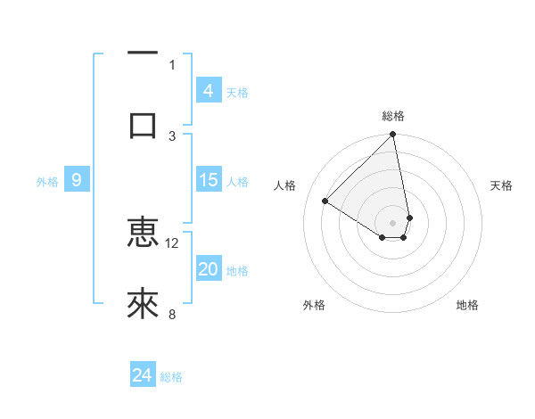 一口 恵來さんの総格は24画の5点!