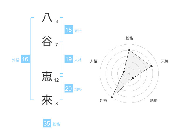 八谷 恵來さんを姓名の画数から五運を鑑定