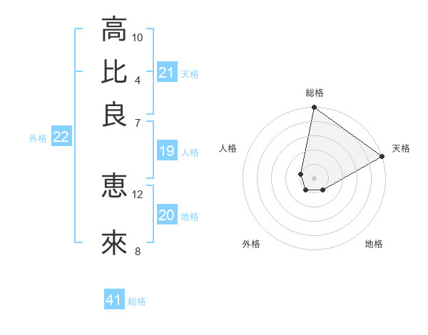 高比良 恵來さんの天格は21画の5点!