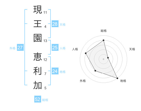 現王園 恵利加さんを姓名の画数から五運を鑑定