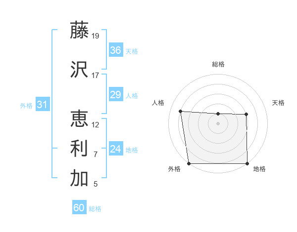 藤沢 恵利加さんの外格は31画の5点!