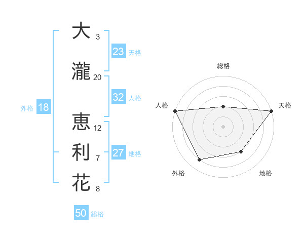 大瀧 恵利花さんを姓名の画数から五運を鑑定