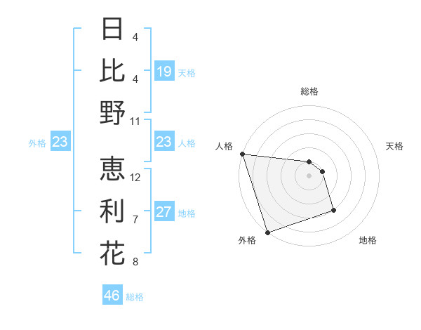 日比野 恵利花さんを姓名の画数から五運を鑑定