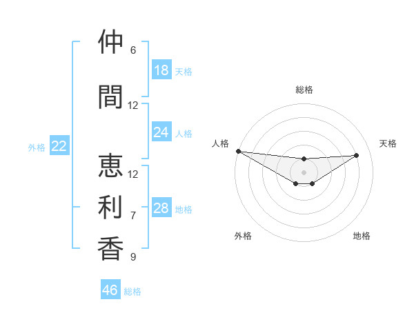 仲間 恵利香さんを姓名の画数から五運を鑑定