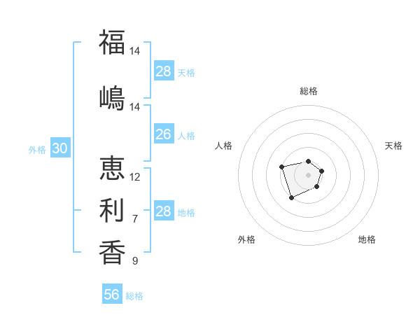 福嶋 恵利香さんを姓名の画数から五運を鑑定