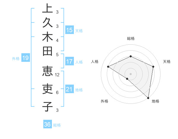 上久木田 恵吏子さんの天格は15画の4点!