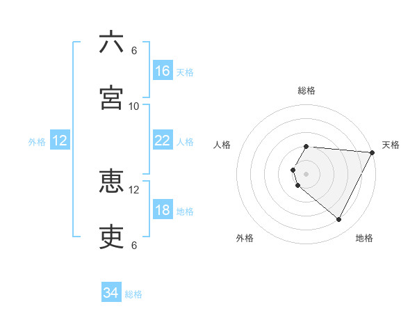 六宮 恵吏さんの天格は16画の5点!