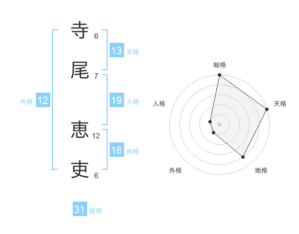 寺尾 恵吏さんの天格は13画の5点!