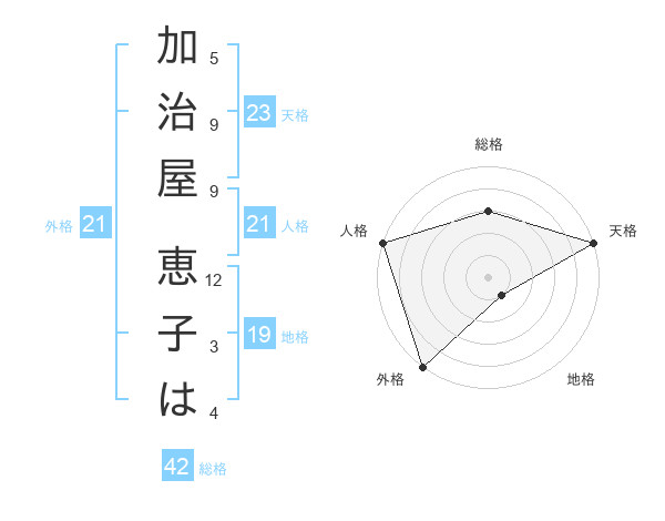 加治屋 恵子はさんを姓名の画数から五運を鑑定