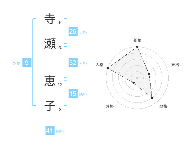 寺瀬 恵子さんの総格は41画の5点!
