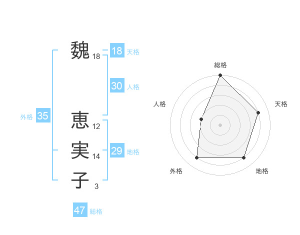 魏 恵実子さんの総格は47画の5点!