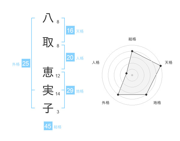 八取 恵実子さんを姓名の画数から五運を鑑定