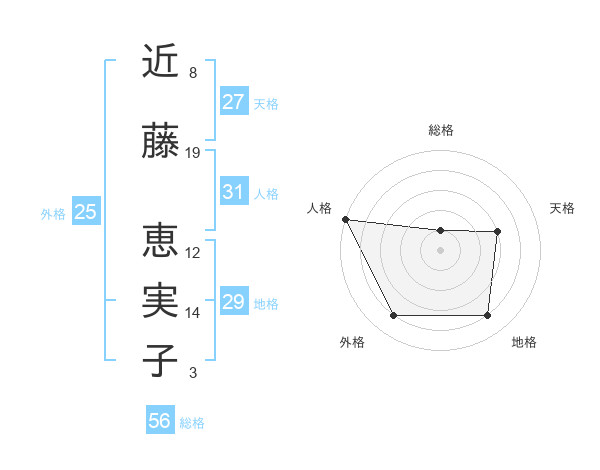 近藤 恵実子さんの人格は31画の5点!
