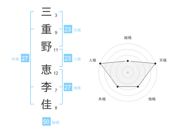 三重野 恵李佳さんの総格は50画の2点!