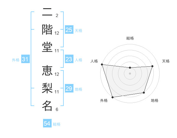 二階堂 恵梨名さんの天格は25画の4点!