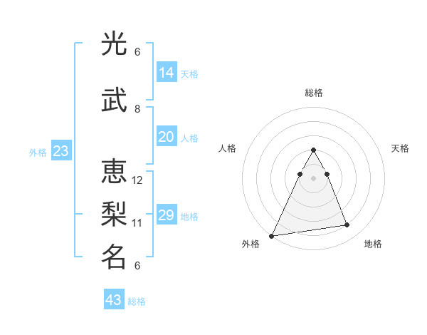 光武 恵梨名さんの総格は43画の2点!