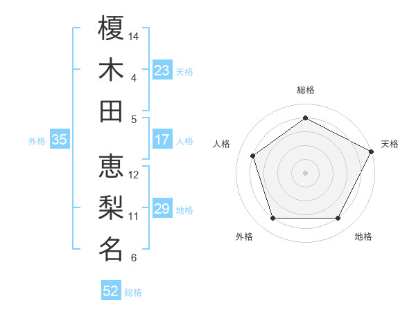 榎木田 恵梨名さんの総格は52画の4点