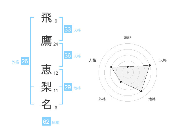 飛鷹 恵梨名さんの天格は33画の4点!
