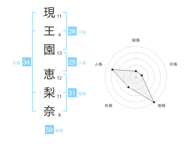現王園 恵梨奈さんの総格は59画の1点!