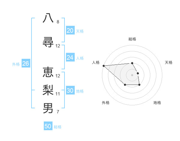 八尋 恵梨男さんの天格は20画の1点!