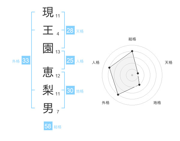現王園 恵梨男さんを姓名の画数から五運を鑑定