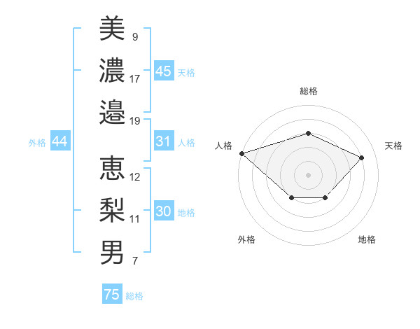 美濃邉 恵梨男さんの総格は75画の3点!