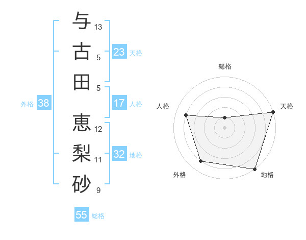与古田 恵梨砂さんを姓名の画数から五運を鑑定