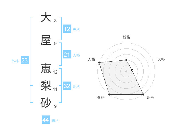 大屋 恵梨砂さんを姓名の画数から五運を鑑定
