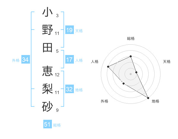 小野田 恵梨砂さんを姓名の画数から五運を鑑定