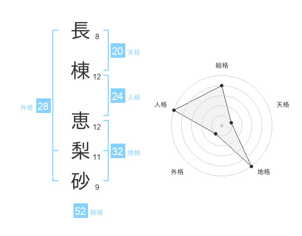 長棟 恵梨砂さんの総格は52画の4点!