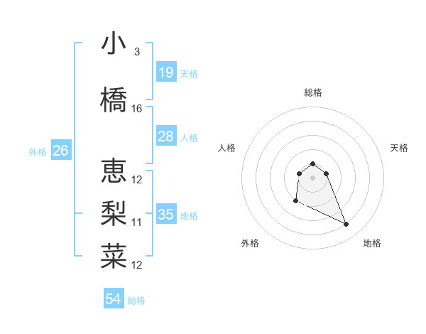 小橋 恵梨菜さんを姓名の画数から五運を鑑定