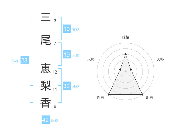 三尾 恵梨香さんを姓名の画数から五運を鑑定