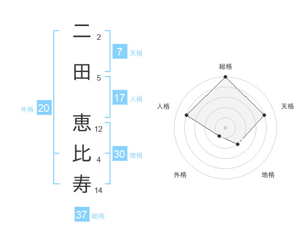 二田 恵比寿さんを姓名の画数から五運を鑑定