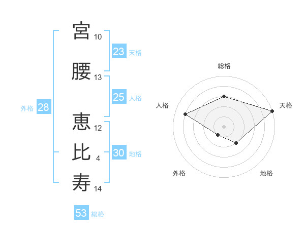 宮腰 恵比寿さんの総格は53画の3点!