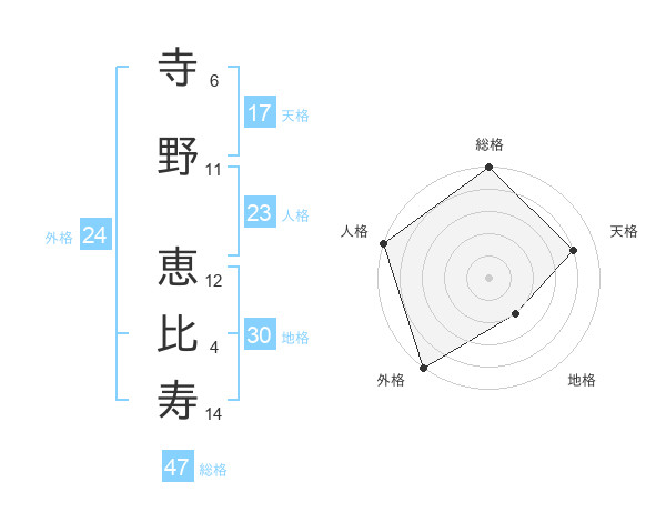 寺野 恵比寿さんの総格は47画の5点!