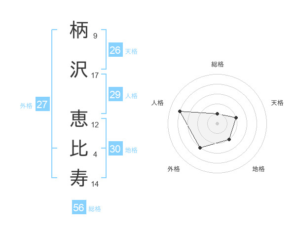 柄沢 恵比寿さんを姓名の画数から五運を鑑定
