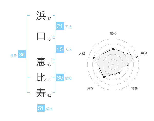浜口 恵比寿さんの総格は51画の3点!