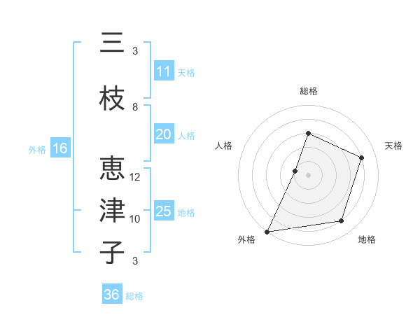 三枝 恵津子さんを姓名の画数から五運を鑑定