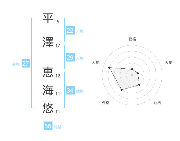 平澤 恵海悠さんを姓名の画数から五運を鑑定