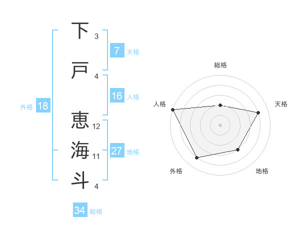 下戸 恵海斗さんの総格は34画の2点!
